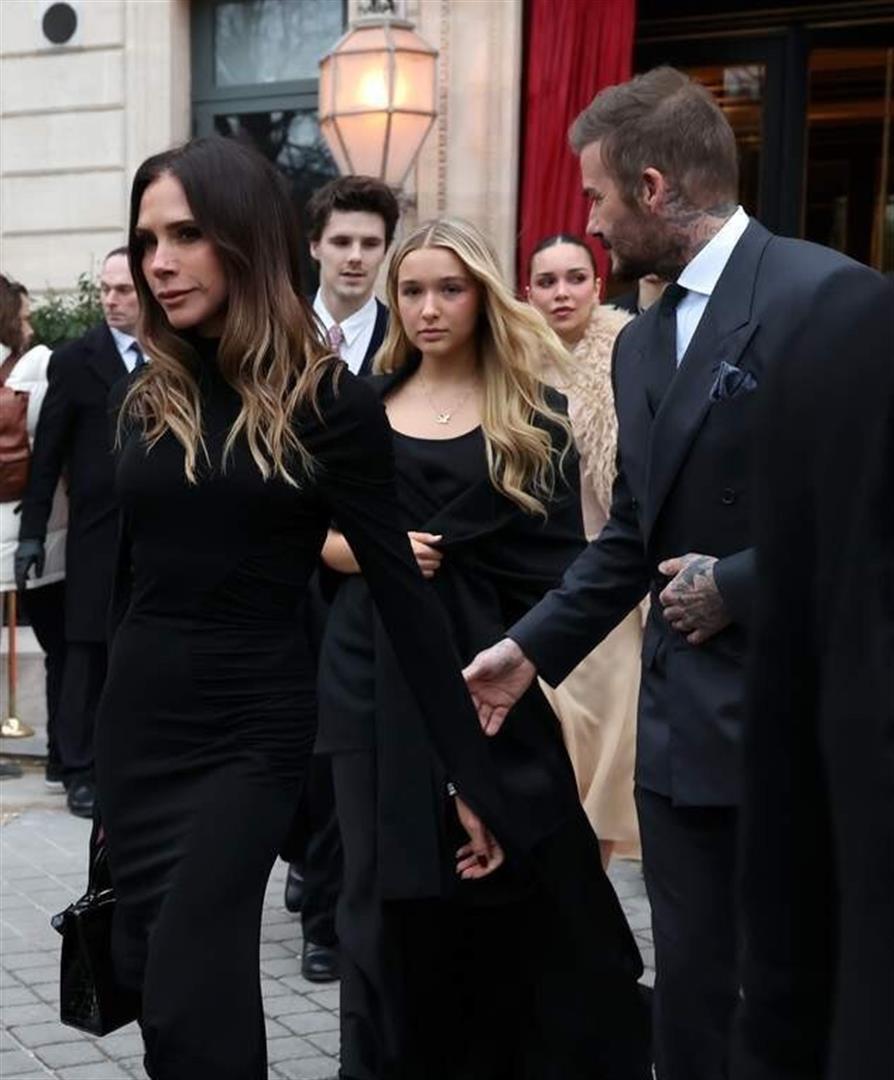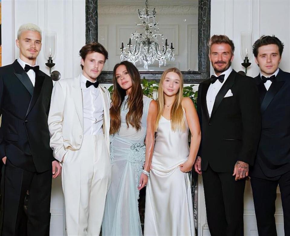 2026年1月,巴黎。 维多利亚·贝克汉姆穿上了一套利落的黑色高领长裙,从法国文化部长手里接过那枚艺术与文学骑士勋章。 丈夫大卫·贝克汉姆穿着同色西装站在一旁,脸上是标准的自豪笑容。 他们的三个儿子来了两个,罗密欧和克鲁兹,各自带着女友。 当然,还有那个从出生就被抱在怀里的女儿,哈珀·赛文·贝克汉姆,大家更爱叫她“小七”。 一家子乌泱泱站在一起,镜头咔嚓作响,画面看起来是完美的名人家庭范本。