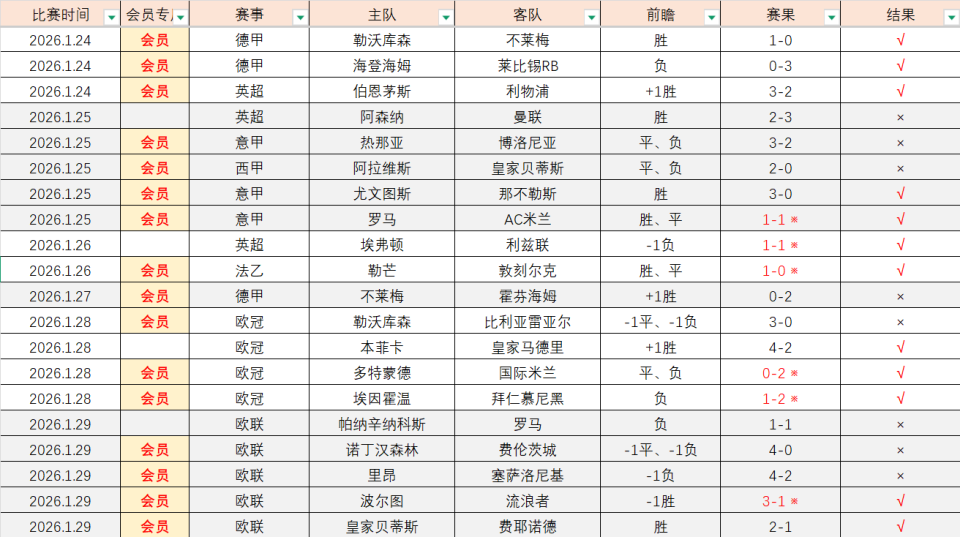 昨天5场比赛答对了2场,稍有不理想,罗马和塞萨洛尼基都吃到红卡,运气有点差,答对了贝蒂斯取胜和波尔图大胜。近期14√9,今天周五联赛回归,【会员专区】发布2场,各位参考。