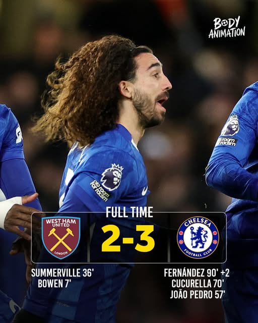 最终,西汉姆以少一人结束比赛,而切尔西则顶住了最后一次角球防守,等来了终场哨。