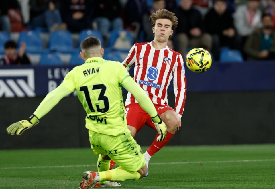 比赛刚刚开不久,尼古拉斯-冈萨雷斯就差一点进球,只可惜他的射门被门将单掌化解。朗格莱犯规,拿到了上半场唯一的一张黄牌。瑟洛特运气有点差,他在第25分钟头部受伤,被担架抬下场。阿尔瓦雷斯替补上场。尼古拉斯-冈萨雷斯在禁区左侧获得好机会,只是他又浪费了,射门踢偏了。半场结束,比分依然是0-0。马竞上半场控球率62%,5次射门,1次射正,没能进球。而莱万特上半场只有2次射门,同样没能进球。