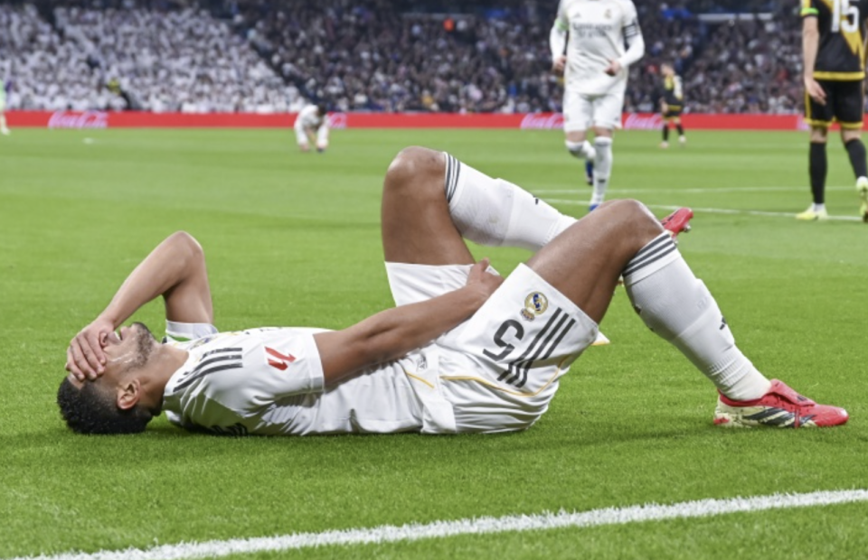 本轮联赛,巴萨先赛,暂时领先皇马4分。此役,坐镇伯纳乌的皇马没有退路,必须取胜。开场第9分钟,皇马遭遇重击,中场核心贝林厄姆跑动时拉伤了大腿,被迫提前离场,他当场落泪。