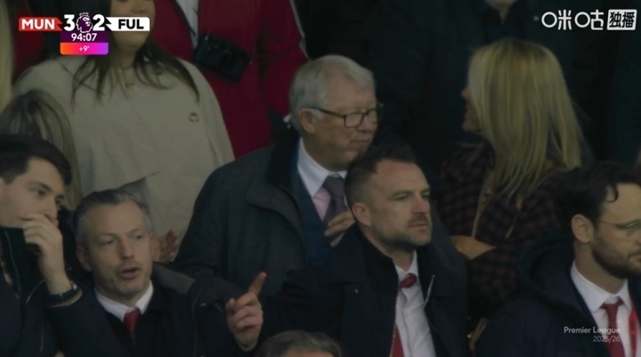 在凯文打入远射世界波为富勒姆扳平比分之后,舍什科为曼联打入制胜球,这让看台上的弗格森喜笑颜开。