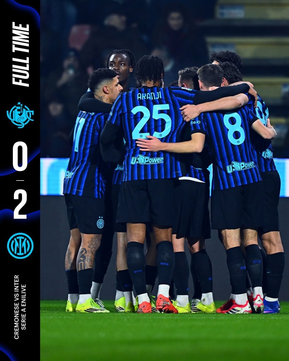 意甲第23轮,国米客场2-0战胜克雷莫内塞,各项赛事三连胜,先赛一场8分领跑。迪马尔科助攻劳塔罗头球破门,杰林斯基世界波。