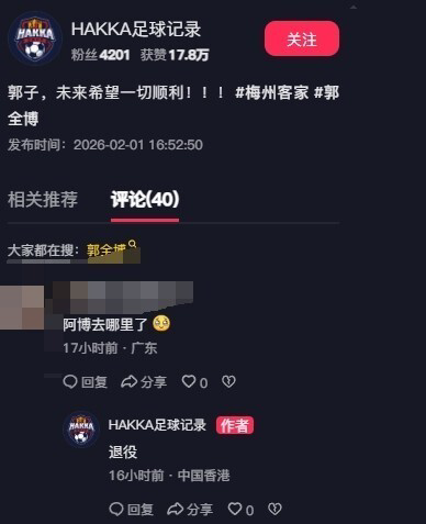 北京时间2月2日,来自长期跟踪关注梅州客家的知名博主“HAKKA足球记录”在社媒透露的消息,28岁的前国门、梅州客家主力门将郭全博将正式退役。据悉,郭全博被近视严重困扰,这或许也是他选择当打之年退役的重要原因。