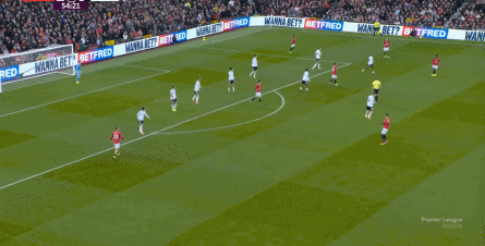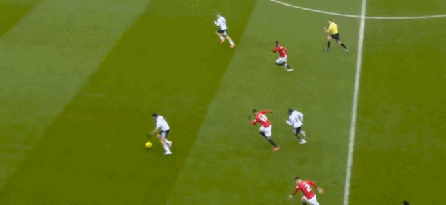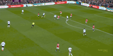 于是,因为右侧确实防不住富勒姆的推进,加上部位点位跟不上,曼联在进球之后,反而逐渐落入下风,被富勒姆掌控住了上半场的后半段局面。