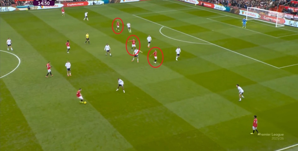 从这个角度来说,库尼亚的防守职责反而比阿玛德-迪亚洛还要重,你可以借此认为库尼亚依旧在执行多尔古的场上职责,但在有球环节,曼联的变化会稍大一些。
