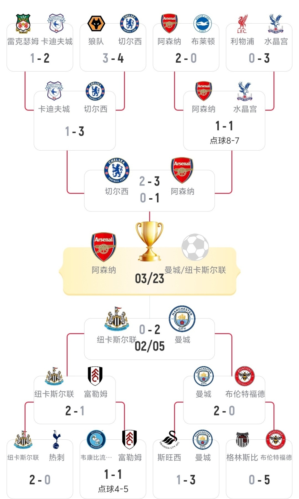 阿森纳1-0切尔西,总比分4-2晋级,决赛坐等曼城(附联赛杯晋级图)