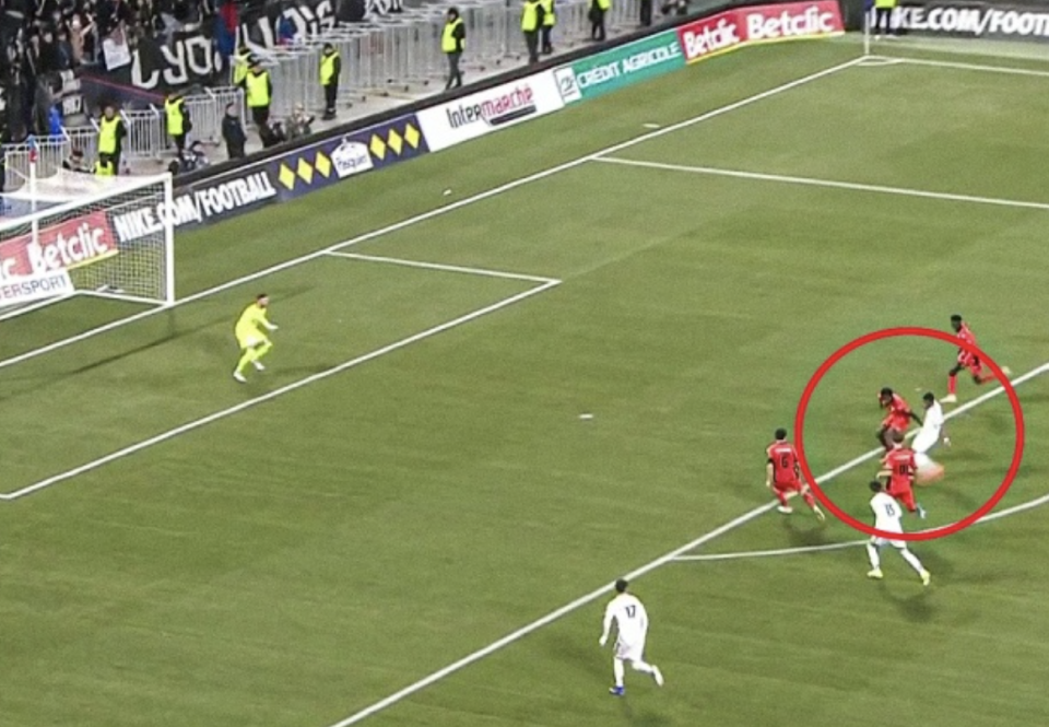 第80分钟,里昂中路推进。在看到队友带球可能被断后,恩德里克及时跟上,在对方后卫之前将球拦下。随后,他在大禁区弧顶处直接来了一脚远射,他的这脚射门力量极大。皮球高速飞向球门,球速很快。