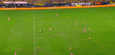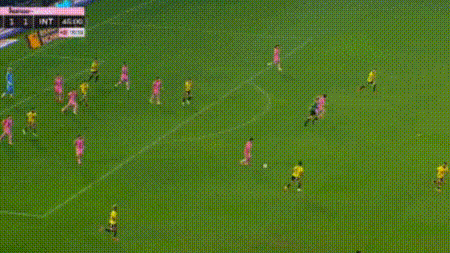 第41分钟,瓜亚基尔巴塞罗那利用角球扳平了比分。不过,梅西在上半场结束前再次挺身而出。第48分钟,梅西在前场右侧带球。看到左侧队友的跑位后,他送出了一脚长距离的转移球,新援贝尔特拉梅接球后劲射破门!迈阿密国际再次领先。