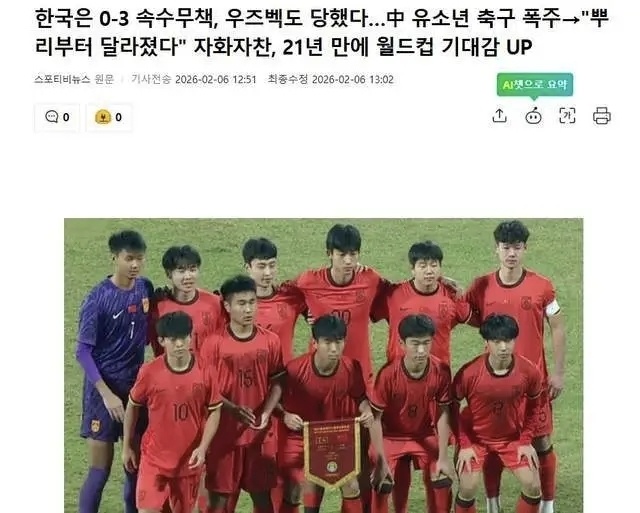 韩国媒体在报道中还“自揭伤疤”,不仅提到乌兹别克斯坦输球,也回顾了韩国队自己近年面对中国青年军的失利。他们提到,在去年的比赛中,中国U22队曾两次击败韩国U22队,两场总比分为3-0。“恐韩症”已成为历史,“恐中症”要来了!