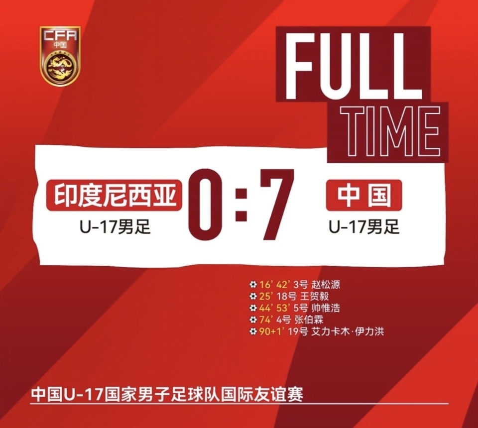 7-0狂胜!“史上最强U17国足”太残暴了,完美复仇印尼,世界杯稳了?