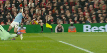 第92分钟,阿利松禁区内扑倒努内斯,裁判判罚点球,随后哈兰德操刀命中,完成传射建功好戏,曼城反超比分,2-1!