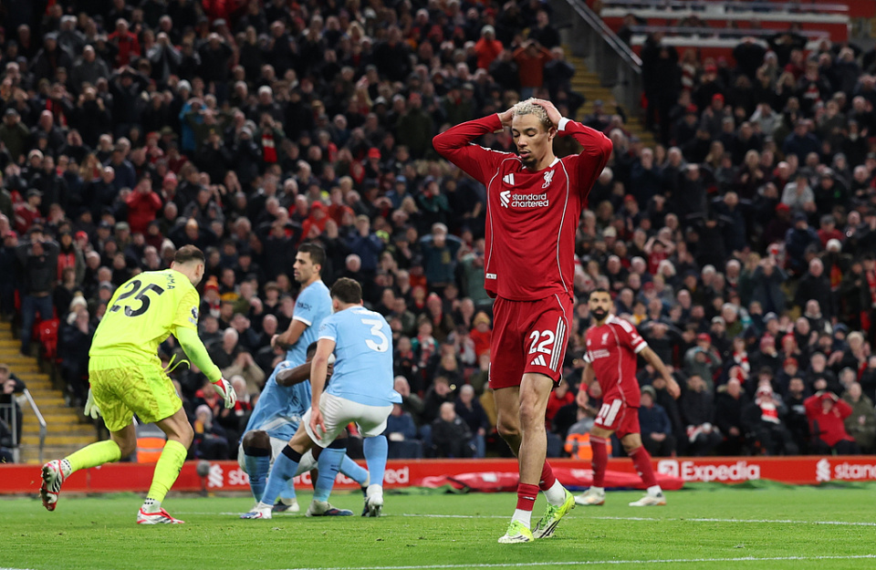 然而领先后,利物浦主帅斯洛特再次犯了战术保守的毛病,领先后的他收缩防线结果导致曼城重新占据进攻主动权。