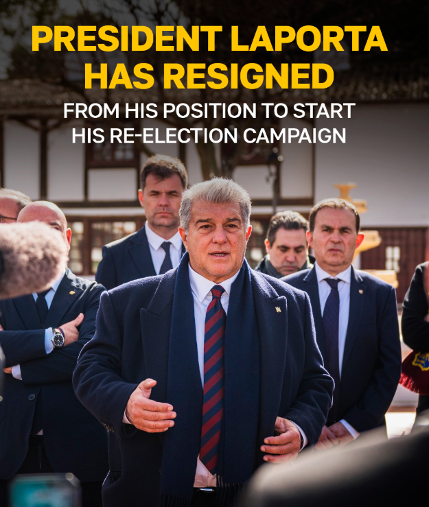 巴萨官宣:“拉波尔塔辞去巴塞罗那主席”。