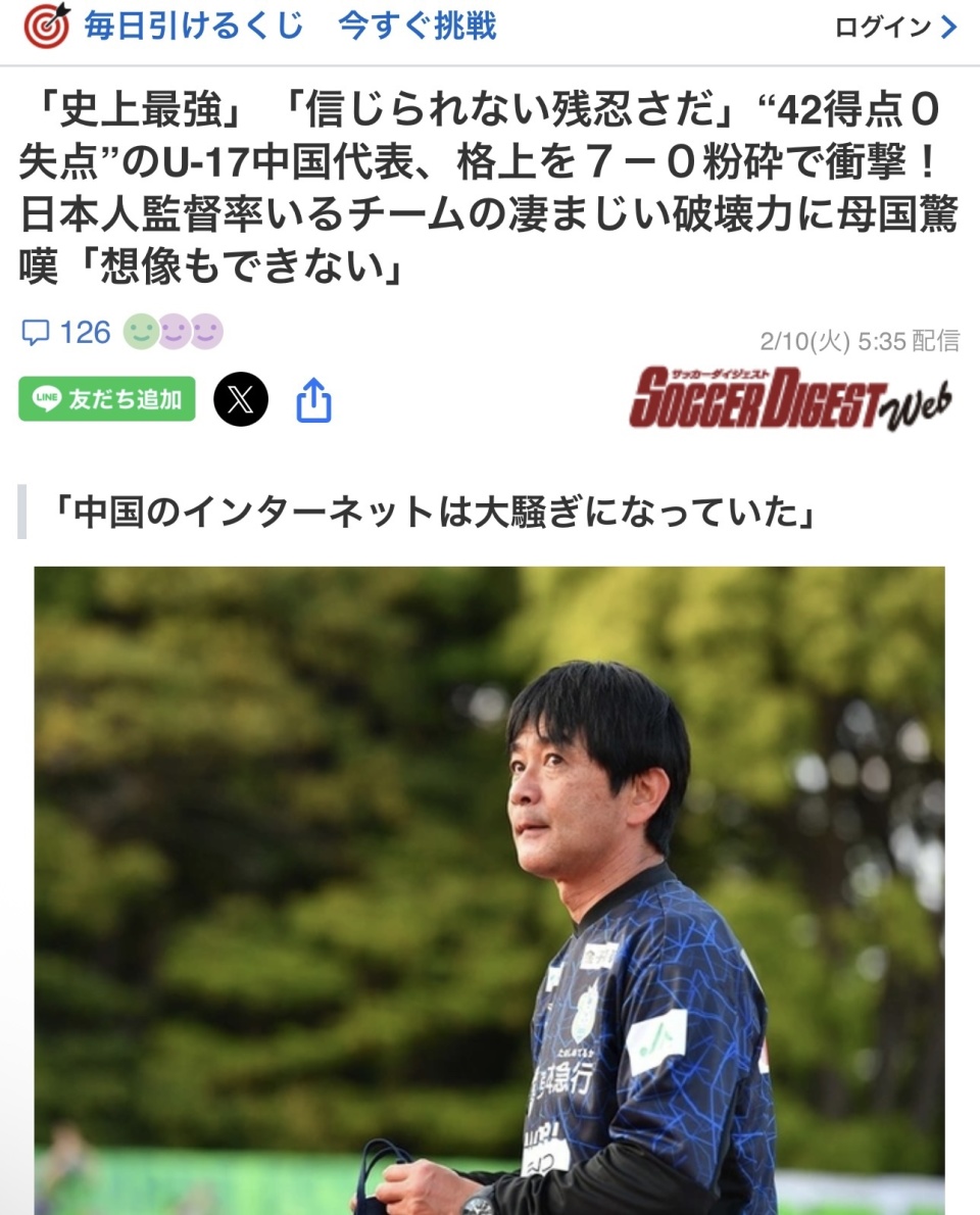 日媒表示,这支U17国足由日本教练浮嶋敏执教,在去年11月举行的2026年U17亚洲杯预选赛中,他们以5战5胜、进42球0失球的惊人成绩成功晋级,如今再次展现出了惊人的破坏力。