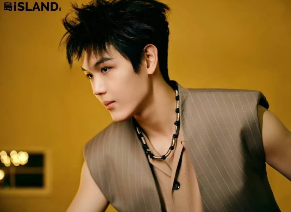 这组时尚大片中,还拍摄了很多王泓钦的个人镜头,他穿着条纹马甲、露出脖颈、手臂的线条,给人一种肌肉很结实的感觉。