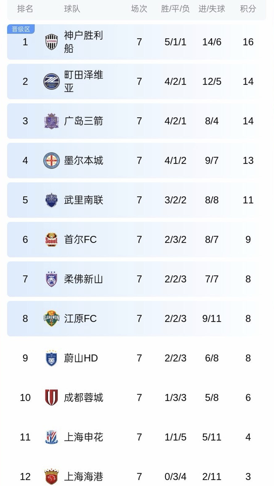 另一场比赛中,蔚山在第93分钟丢球,1-2被墨尔本城绝杀。在目前的亚冠东亚积分榜上,中超3队继续排名后3位。其中上海双雄都已经被淘汰,国安在亚冠二级联赛中小组出局,只有蓉城还有晋级希望,但也很被动。末轮比赛中,蓉城将在客场挑战已经出线的町田泽维亚,只要蓉城不胜,那么就将无缘晋级16强。而且即便蓉城获得胜利,也还要看其他球队的脸色,主动权在首尔、柔佛等球队的手里。