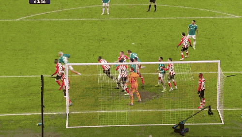 第60分钟,久攻不下的利物浦终于取得进球,萨拉赫开出角球,范迪克头球打在迪亚斯的头上,砸进球门。