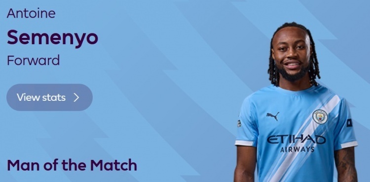 在这场大胜中,新援塞梅尼奥无疑是最耀眼的明星。他首发踢满全场,贡献 1 粒进球与 1 次助攻,1 次射门全部射正,还完成 1 次关键传球与 2 次抢断,赛后获评 7.9 分,为全场最高,并成功当选英超官方球迷票选的全场最佳球员。