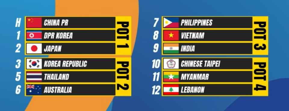 作为东道主,马晓旭执教的U17女足与朝鲜、日本一起成为第一档球队。第二档球队包括韩国、泰国、澳大利亚,第三档球队包括菲律宾、越南、印度,第四档球队包括中国台北、缅甸以及黎巴嫩。