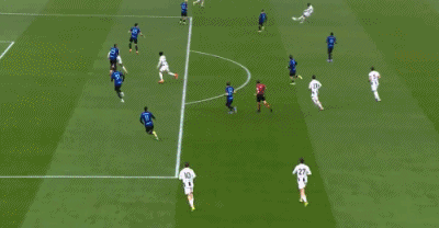 第17分钟,恩里克大禁区右侧传中,皮球打在坎比亚索脚上折射入网,国米取得了1-0的领先。