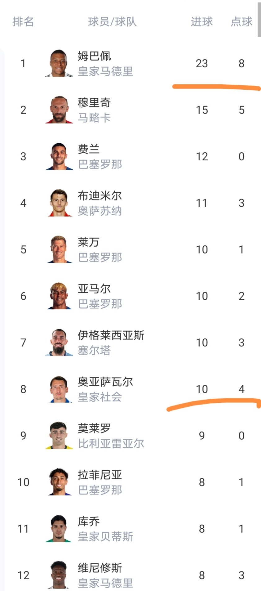 射手榜上已经有8名球员进球上双,维尼修斯也是逼近射手榜前十了。