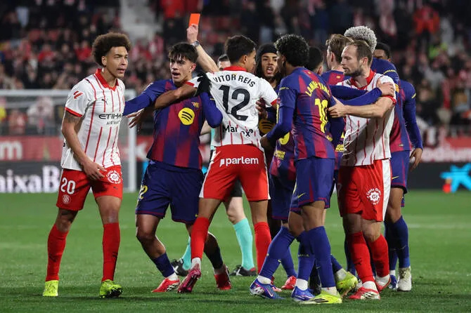 比赛第90+9分钟,赫罗纳队乔尔·罗卡凶狠的铲球被红牌罚下,但是比赛时间所剩无几,巴萨虽然多一人作战,但是已经无力改变结果,最终他们爆冷输球了!