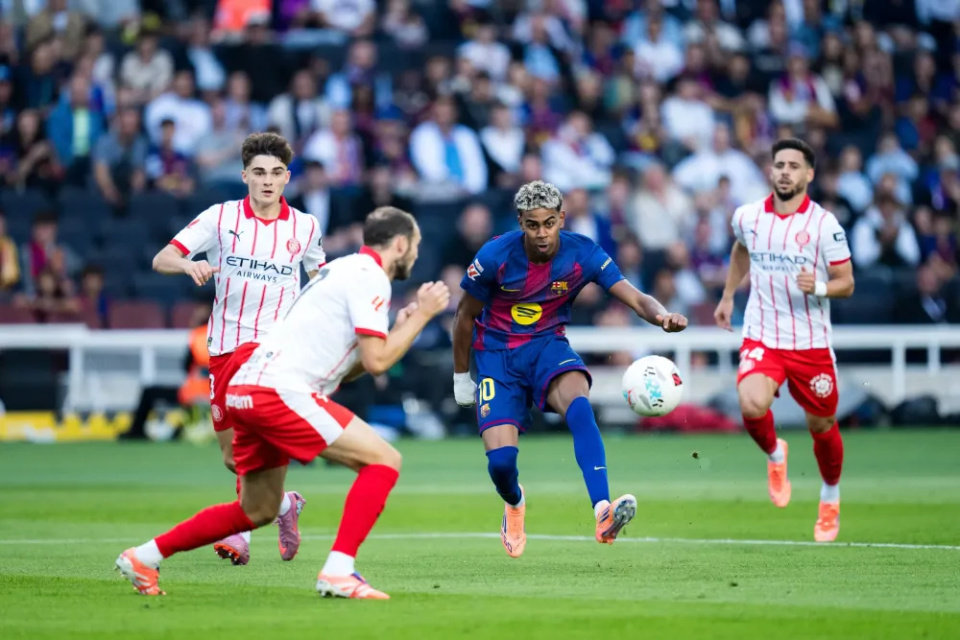 巴萨近期有些不在状态,他们在国王杯半决赛首回合0-4惨负马德里竞技,出局的概率已经非常大了,现在西甲赛场也没有扛住,本轮比赛巴萨控球率达到了71%,射门次数27-13,射正4-9,他们的进攻打得有些着急,效率太低,而且防守端被对手的反击整得很难受,这是本场比赛最大的问题,此役巴萨首发4-3-3,费兰、拉菲尼亚、亚马尔搭档锋线,德容、奥尔莫、费尔明坐镇中场,亚马尔上半场就错失了绝佳的机会!