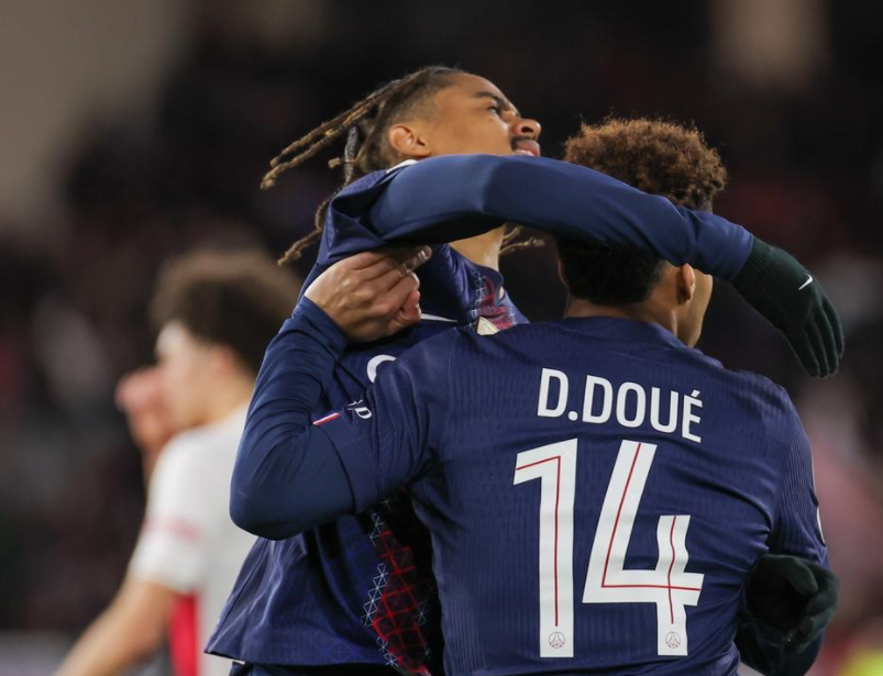 第18分钟,巴黎圣日耳曼再次丢球。阿克利乌什送出直塞球,巴洛贡前插,突入禁区,低射近角,球进了!24岁的巴洛贡梅开二度!第20分钟,克瓦拉茨赫利亚被放倒,巴黎圣日耳曼获得点球机会。维蒂尼亚主罚,结果他射出的点球被扑了出去,太可惜了。第27分钟,登贝莱受伤下场,杜埃替补上场。