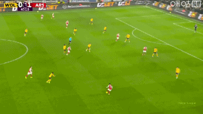 第5分钟,萨卡禁区插上头球破门,阿森纳1-0领先狼队