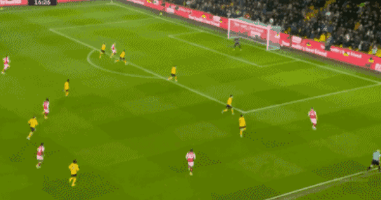 第44分钟,萨卡右路长驱直入,可惜传中被防守球员破坏。