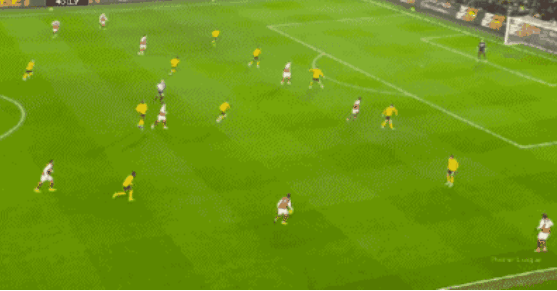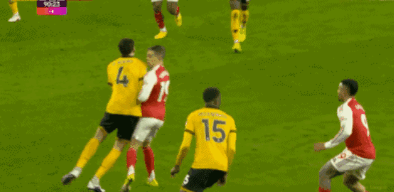第90+4分钟,加布里埃尔和拉亚配合失误,给了埃多齐补射的机会,卡拉菲奥里虽然奋力在门前解围,但还是把皮球挡入自家球门,最终狼队2-2绝平阿森纳。