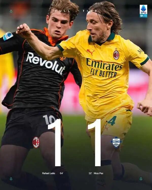 1-1科莫,联赛第9平,可能意味着米兰已经和意甲冠军没有关系了。这一刻,很多糟糕的想法涌上心头。