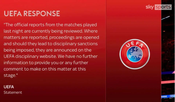 目前,欧足联已表态介入:“正审阅比赛官方报告。若确认存在违规行为,将启动纪律程序,结果将公布于欧足联纪律页面。”