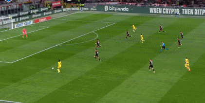 第64分钟,亚沙里长传制导,莱奥精妙挑射破门,米兰1-1!