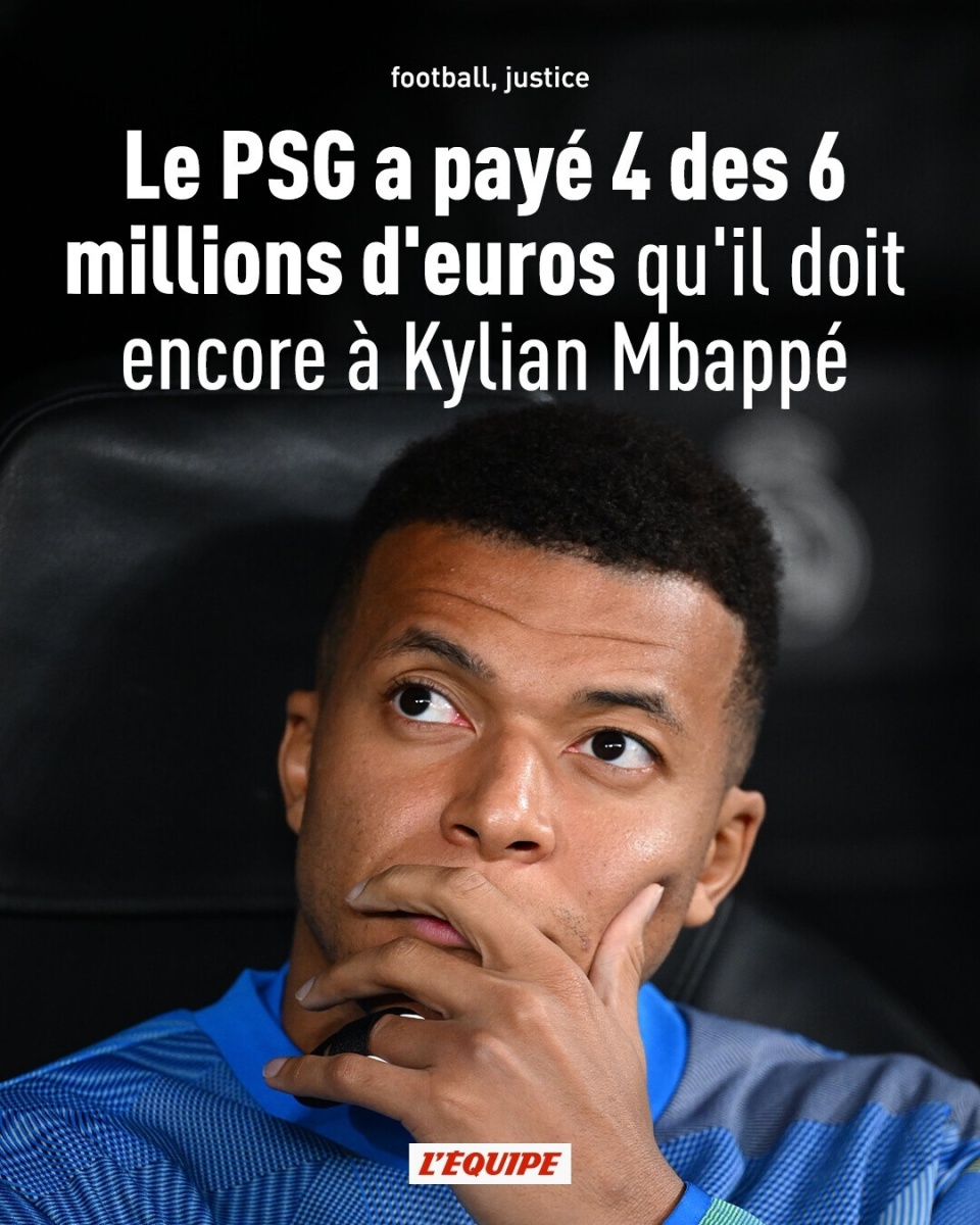 据《队报》的最新报道,巴黎圣日耳曼已经支付了姆巴佩约600万欧元欠薪中的400万欧元,此外他们希望通过协商取消另一项惩罚:在官网首页公示整份判决书一个月。