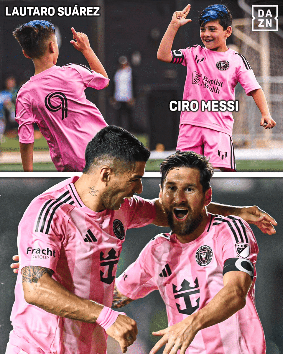 传承!梅西之子与苏亚雷斯之子共同出战,模仿父辈庆祝动作