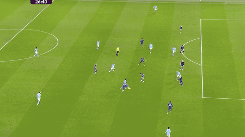 第26分钟,塞梅尼奥策动进攻,哈兰德游走到了边路,化身多库下底传中,奥莱利头球破门。