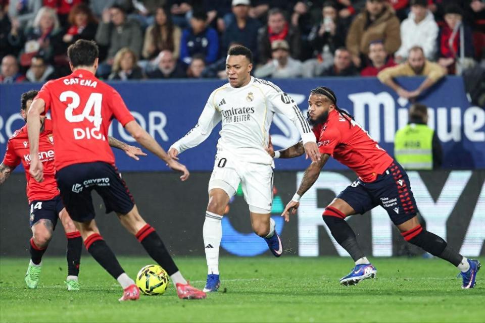 上半场,库尔图瓦多次精彩扑救,布迪米尔造点,亲自主罚打破场上僵局,皇马半场0-1落后;姆巴佩小角度破门但越位在先,巴尔韦德助攻维尼修斯破门扳平比分,劳尔-加西亚为奥萨苏纳打入绝杀进球。