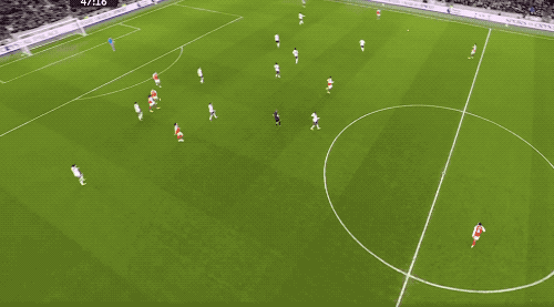 第36分钟,萨卡形成单刀,维卡里奥出击,用身体将球挡出。