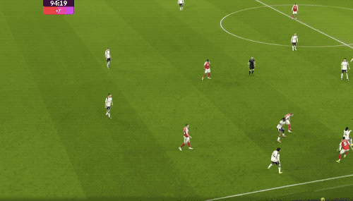 第32分钟,萨卡晃过萨尔后传中,埃泽停球不太利索,但迅速凌空抽射,阿森纳取得领先。