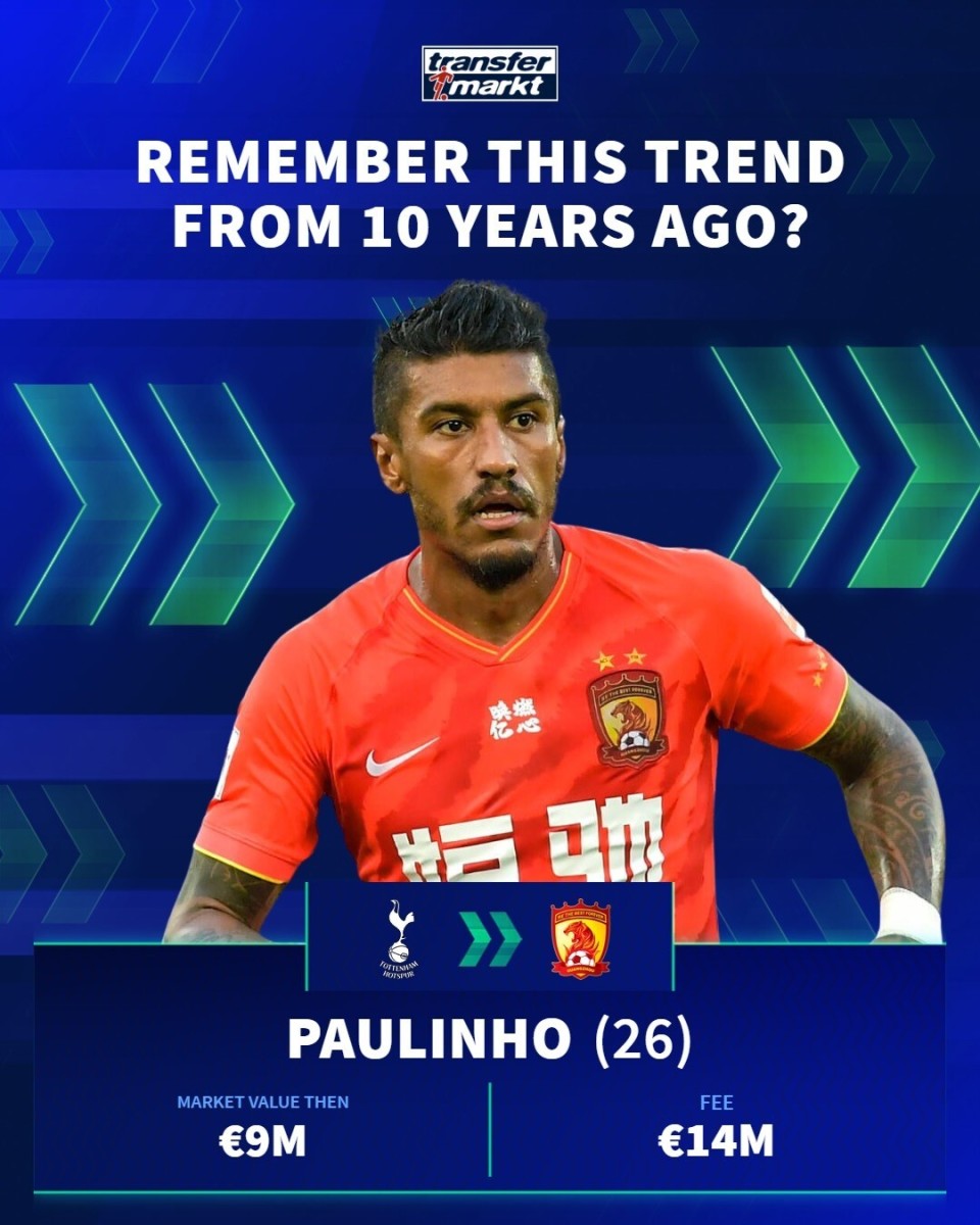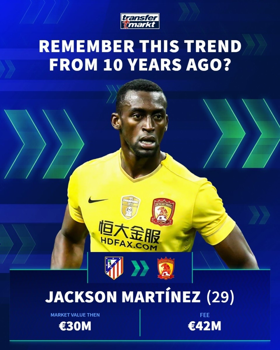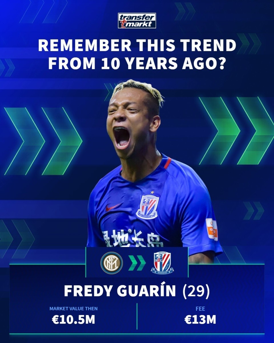 德国转会市场在社交媒体上分享了中超10年前的引援,并配文道:“十年前,一股席卷欧洲足坛的潮流!🌍”
