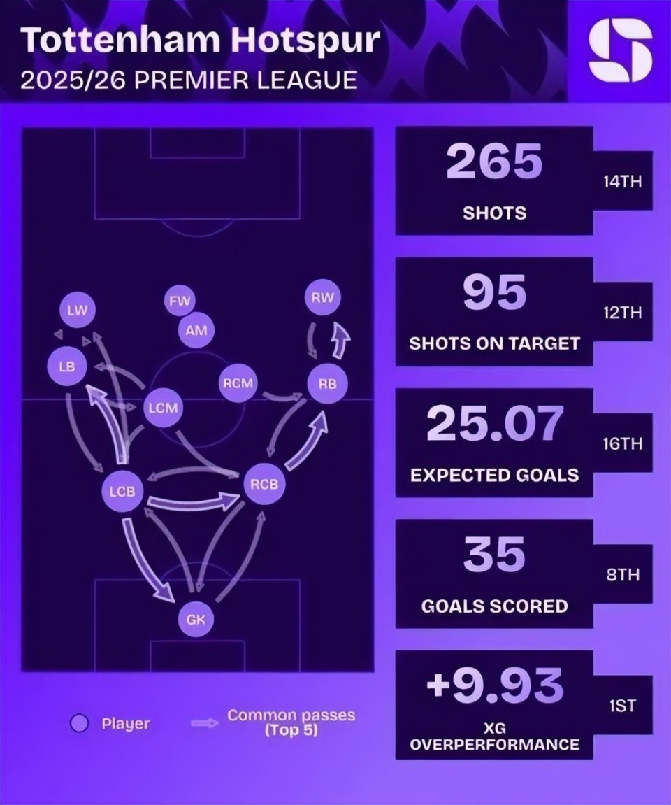 现实有多残酷?看看数据就知道了的1996/97赛季的桑德兰、1999/2000赛季的温布尔登、2010/11赛季的布莱克浦,都曾在26轮拿到29分的情况下最终降级。热刺现在27轮29分,形势比那三支球队更糟糕。