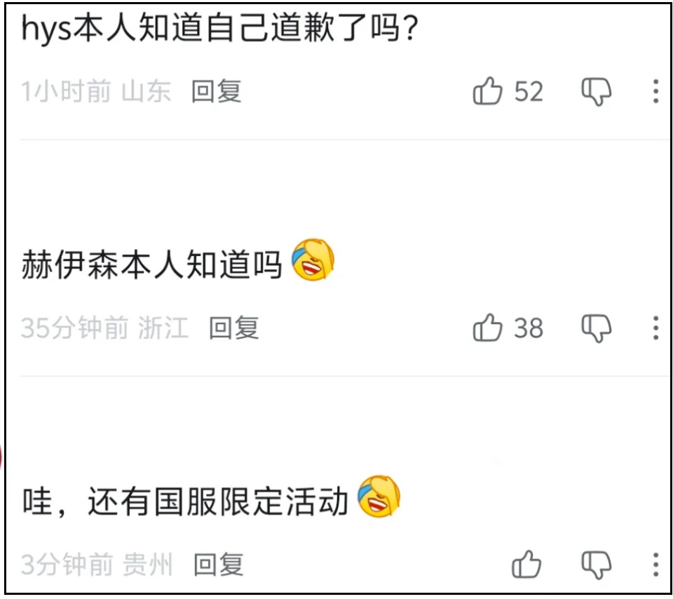 有网友专门去赫伊森社媒账号看了一下,根本无事发生,没有任何道歉内容。