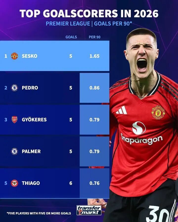2026年以来,谢什科是整个英超效率第一高的球员,而且是遥遥领先——对富勒姆,对西汉姆,今天又是埃弗顿,他屡屡从替补席上出现,又以天人降世之势,做出挽救曼联之举。