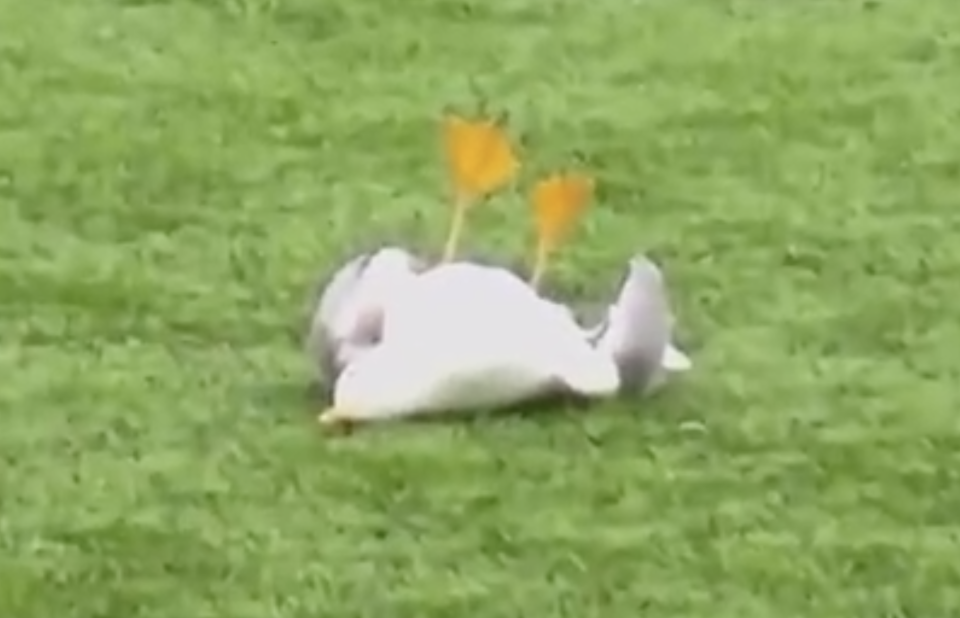 被皮球击中后,海鸥当即跌落至地面上,肚子朝上,且两腿伸得笔直,晕了过去。这时,伊斯坦布尔尤尔杜姆体育队的队长立即跑了过来,并简单检查了这只海鸥的情况。