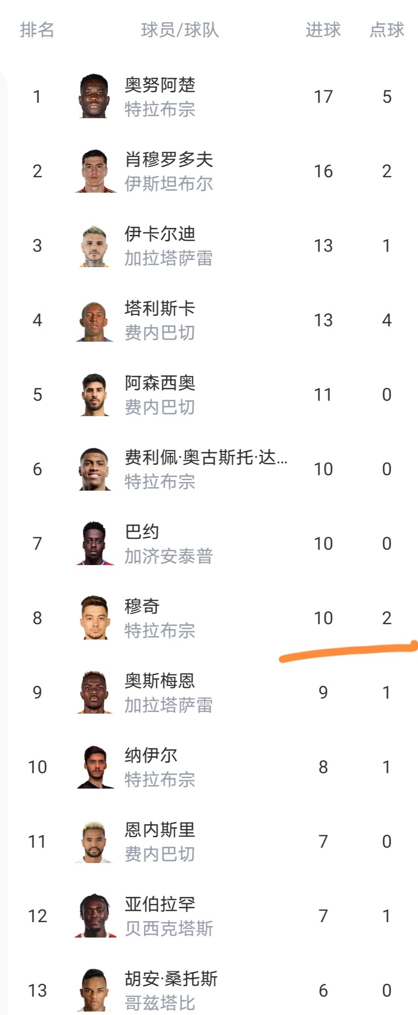可以看到费内巴切队爆大冷门遭逼平之后,积分仅上涨到53分,继续排名第2,无缘追平榜首的加拉塔萨雷队,这显然是天助加拉塔萨雷队啊。费内巴切队也是不争气,给你机会都不中用啊,对方少一人都拿不下。虽然费内巴切队依然保持不败,但是费内巴切平局太多了,8场平局其实就已经丢了16分,哪怕少2场平局,费内巴切目前也是领跑的。