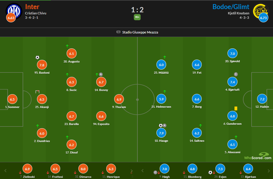 欧冠:阿坎吉致命失误 巴斯托尼破门难救主 国米2-5博德闪耀无缘16强