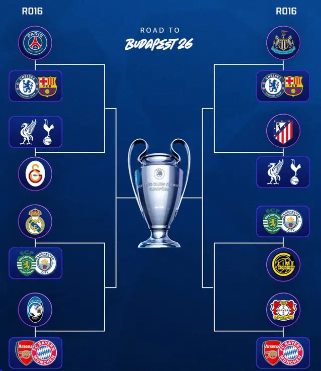 随着附加赛战罢,马德里双雄、巴黎、纽卡等实力更好的队伍晋级,亚特兰大逆转多特成功,博德闪耀继续创造奇迹,2025/26赛季欧冠16强全部出炉(8支直通+8支附加赛)。2月27日19:00(明天),1/8决赛抽签将在瑞士尼翁进行的。届时,各支队伍的命运会就此被布置。到底是谁会被好运青睐,谁又会落入对豪门,也会跟着揭晓给出答案的。