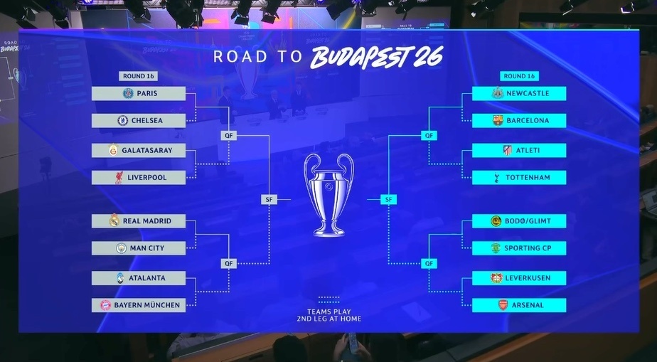 欧冠16强抽签出炉:皇马VS曼城!巴黎大战切尔西 热刺PK马竞